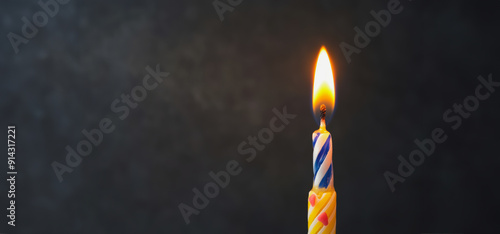 Colorful Candle Burning Brightly Against Dark Background With Smoke and Wax Drips