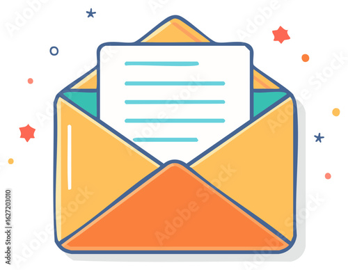 Colorful cartoon illustration of an open envelope with a letter for mail and communication