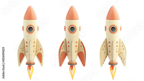 Colorful Cartoon Rockets on Clear Background Collection Generative AI