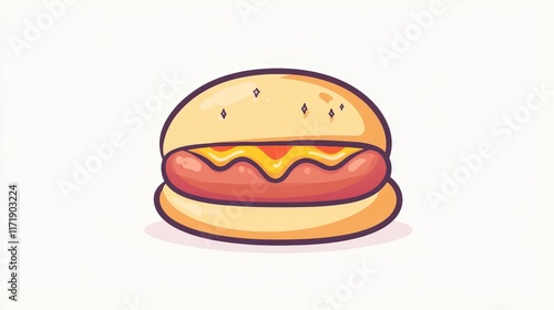 Colorful Cartoon Style Hot Dog with Sesame Seed Bun and Condiments
