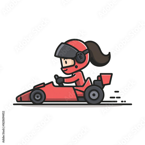 colorful cartoon woman driving F1 race car