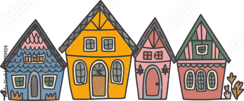Colorful Cartoon-Style Houses in a Vector Illustration