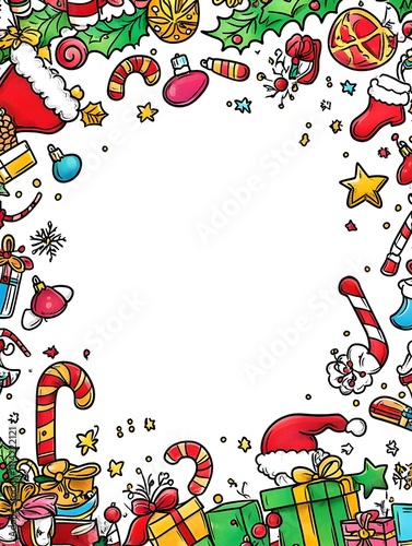 Colorful Christmas doodle border with copy space.