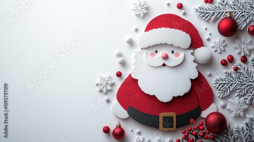 Colorful Christmas Santa Claus Decoration with Red Ornaments, White Snowflakes, and Green Pine Branches for Festive Holiday Seasonal Celebrations and Events