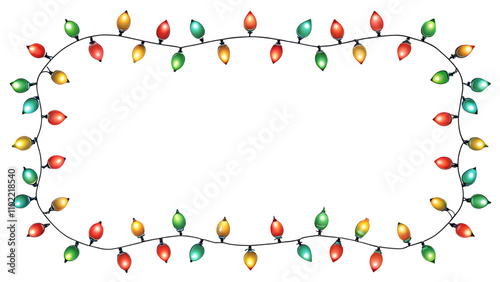 Colorful Christmas String Lights Border on transparent background element PNG cutout