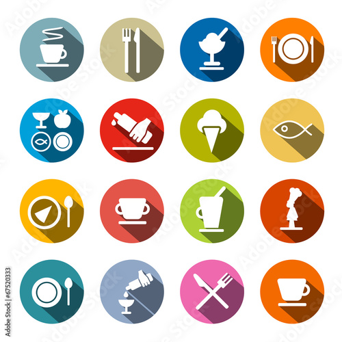 Colorful Circle Flat Design Vector Restaurant - Food Icons Set