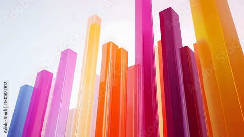 Colorful cityscape featuring multiple buildings representing a vibrant three-dimensional bar chart in design