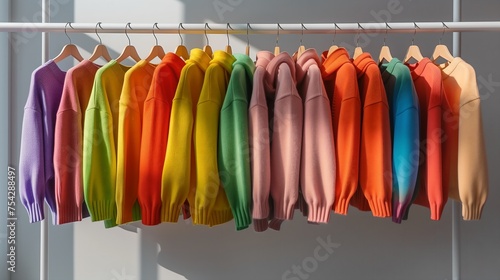 Colorful Clothing Collection on Coathangers in Retail Store