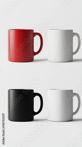 Colorful Coffee Mugs Set on Simple Background for Home or Office Use