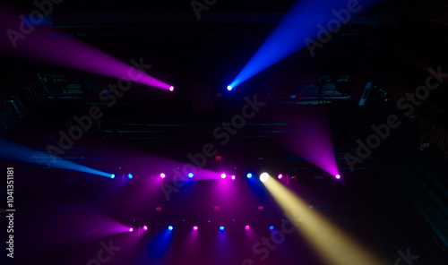 Colorful concert lights on empty stage