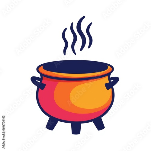 Colorful cooking pot with steam rising in modern design