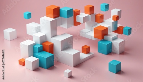 Colorful cube composition in a modern 3D render illustration of geometric shapes and vibrant hues