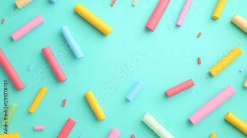 Colorful Cylindrical Shapes on a Calm Mint Background for Creative Design and Modern Aesthetic Use