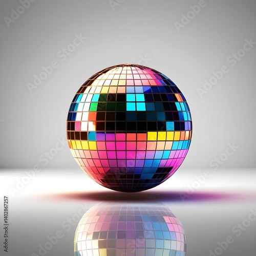 Colorful Disco Ball on Reflective Surface