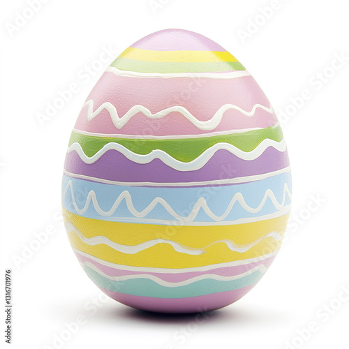 Colorful Easter egg with pastel stripes and zigzag patterns