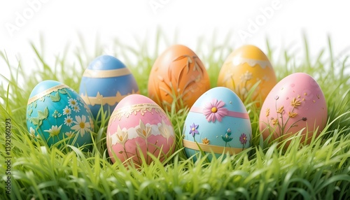 Colorful Easter Eggs Nestled in Fresh Grass