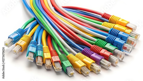 Colorful Ethernet Cables on White Background