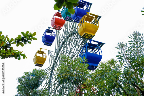Colorful Ferris wheel in the park with blue sky background