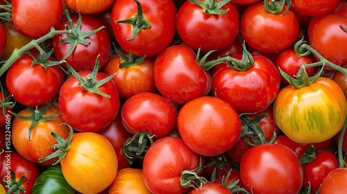 Colorful festival chaos with tomatoes mid-throw, close-up framing with text room