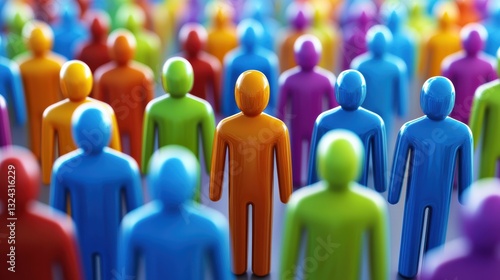 Colorful figures representing diversity and engagement in crowd, highlighting individuality and teamwork. This symbolizes importance of collaboration and employee involvement