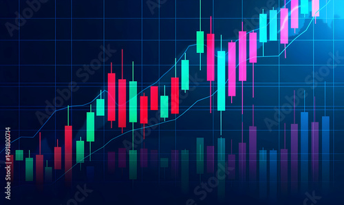Colorful Financial Chart with Candlestick Graph on Dark Background