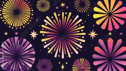 Colorful Fireworks and Stars on a Dark Background for Celebrations and Events