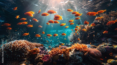 Colorful Fish Swimming in Vibrant Coral Reef.