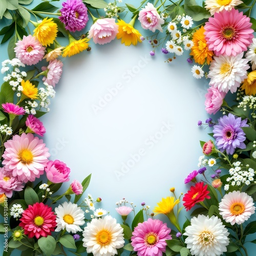 Colorful Floral Frame with Empty Center for Design