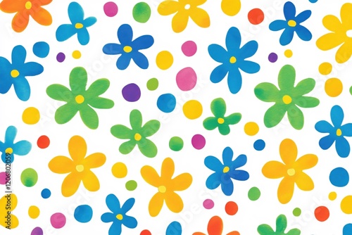 Colorful Floral Pattern with Dots, Ideal for Backgrounds and Design Projects