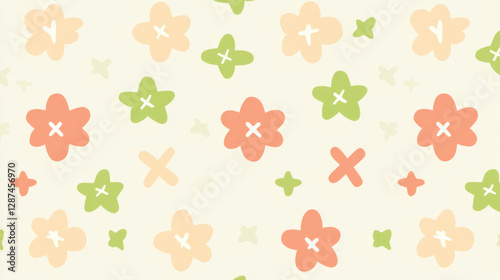 Colorful floral pattern with simple shapes on light background