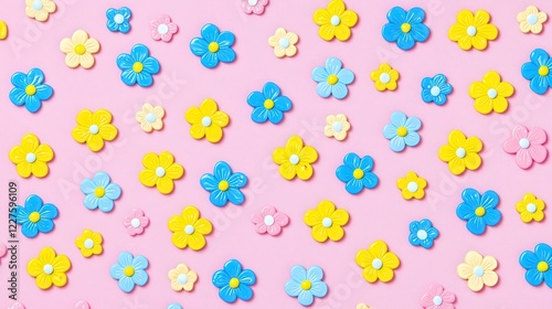 Colorful Flower Decoration on Pink Background for Design Projects