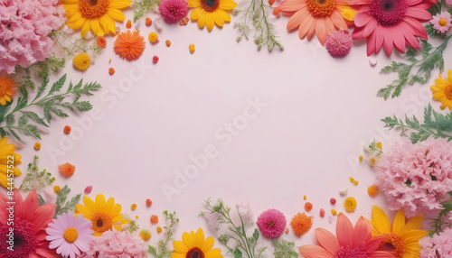 Colorful Flowers Flatlay with Copy Space