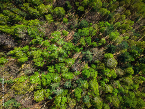 Colorful foliage in Forest at Spring. Aerial Drone Top Down View