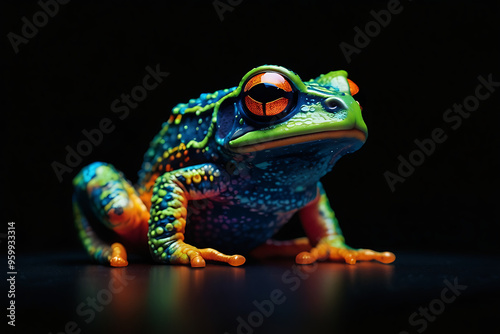 colorful frogs sitting on a black background
