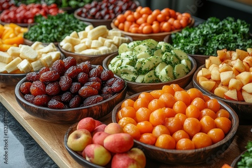 Colorful Fruit and Vegetable Buffet Display