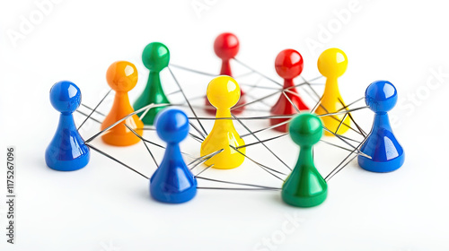 Colorful Game Pieces Connected by Wire in Social Network Concept