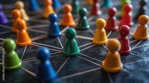 Colorful game pieces interconnected, representing networking, community, and collaboration.