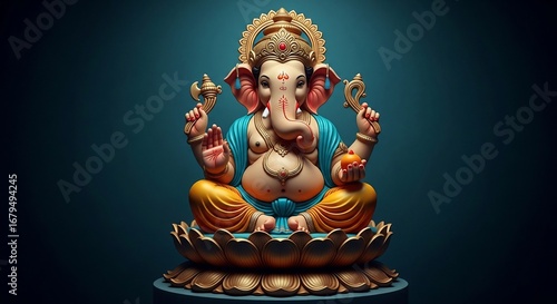 Colorful Ganesha Statue on Lotus Throne.