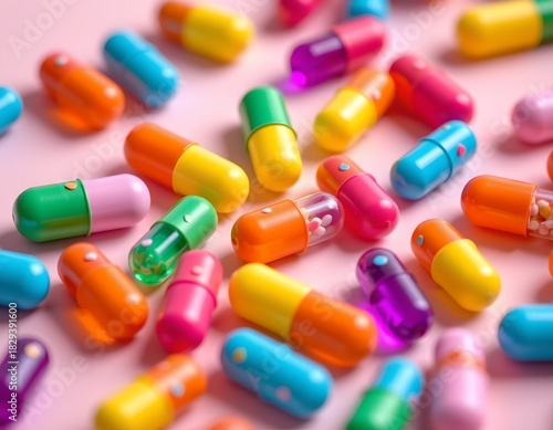 Colorful Gelatin Capsules Pastel Background with Playful Sprinkles