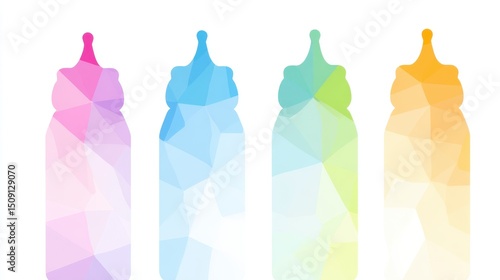 Colorful Geometric Baby Bottles in Pastel Shades Displayed in a Modern Artistic and Abstract Design