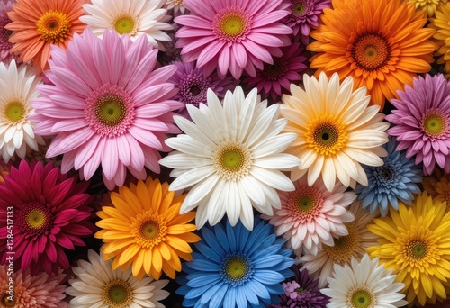 Colorful Gerbera Daisy Flowers Background with Pink, White, Orange, Blue and Yellow