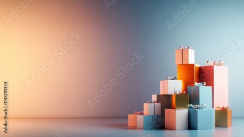 Colorful gift boxes stacked creatively modern studio setting high-quality image elegant presentation artistic perspective