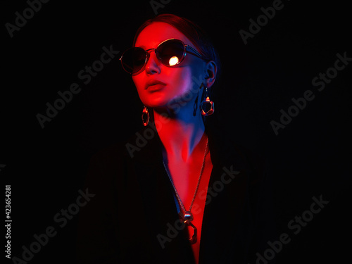 colorful girl in sunglasses and jewelry