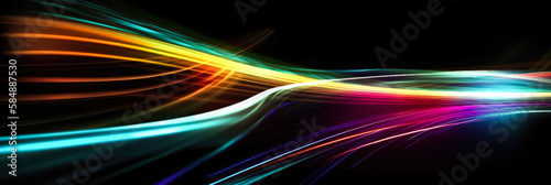 colorful glowing lighttrail background widescreen wallpaper, generative ai