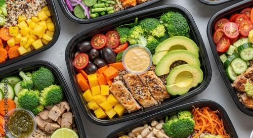 Colorful healthy meal prep containers