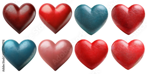 Colorful Hearts in Red and Blue Shades for Creative Projects, isolated on transparent background
