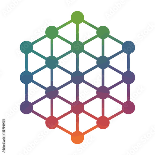 colorful hexagonal geometric pattern with interconnected nodes and lines