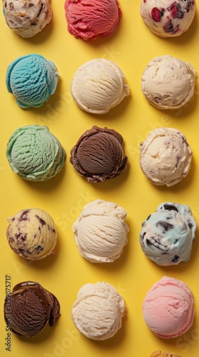 Colorful Ice Cream Scoops on Yellow Background