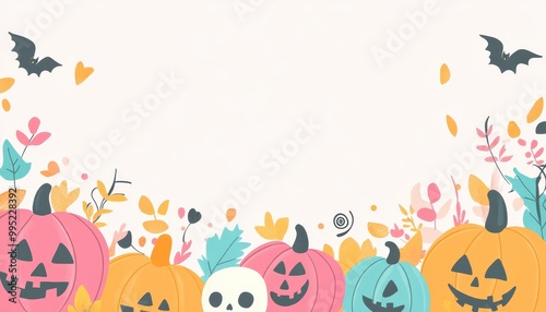 Colorful Jack-o'-Lantern Pumpkins with Floral Background