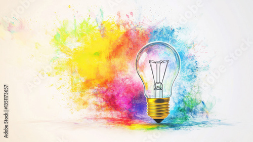 Colorful light bulb with vibrant splash art
